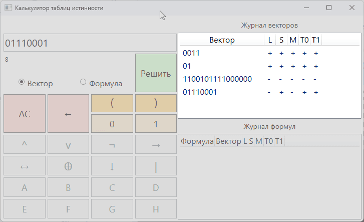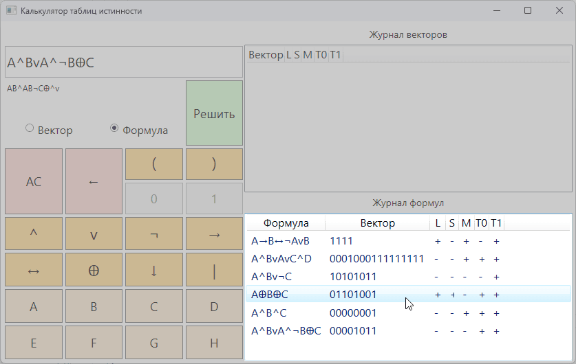 Двойным кликом можно открыть любой результат который расчитывался ранее
