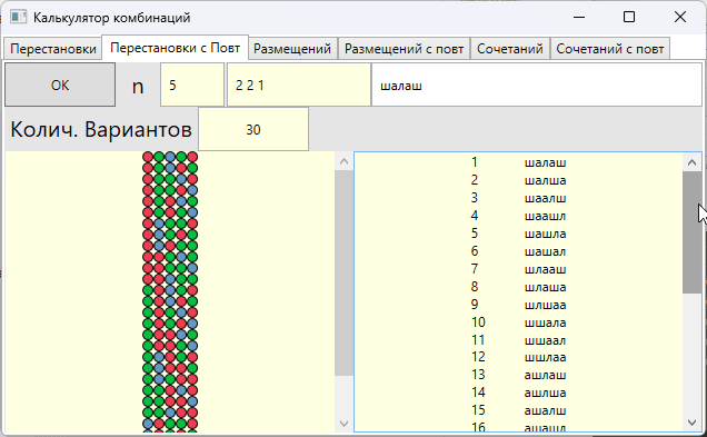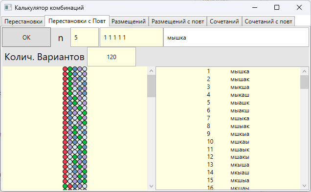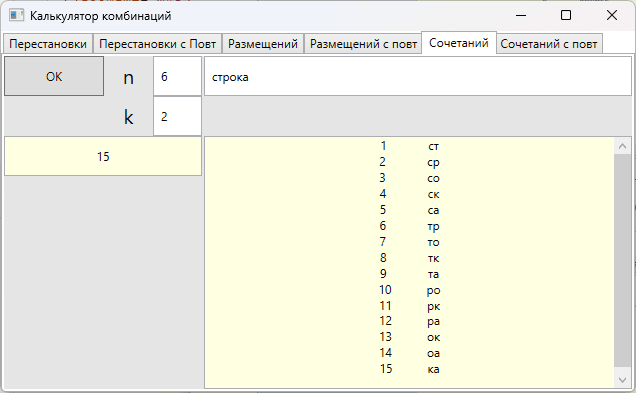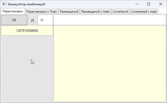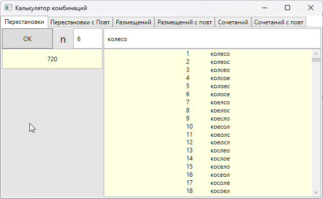 Калькулятор по комбинаторике - позволяет быстро посчитать число перестановок, размещений и сочетаний, в том числе с повторениями.