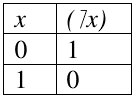 Одной из основных булевых функций является функция отрицания, значение которой определяется по таблице:
